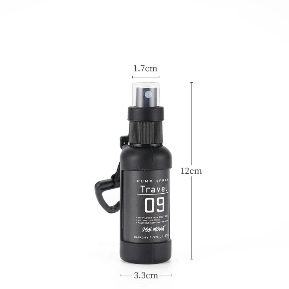 Stay clean and prepared outdoors with this Portable 50ml Tactical Spray Bottle. Perfect for holding alcohol, sanitizer, or cleaning solutions, it features a compact and durable design ideal for camping, hiking, and travel. The leakproof cap ensures safe storage, while the fine mist sprayer provides even, efficient coverage. Lightweight and reusable, this black tactical bottle easily fits into backpacks or pockets—making it a practical accessory for hygiene and outdoor convenience.